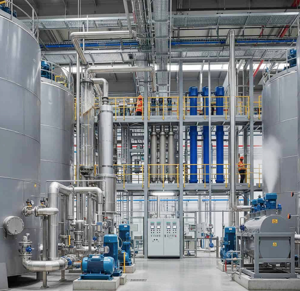 Filters water through semi-permeable membranes to remove up to 99% of dissolved salts, organics, and contaminants. RO systems provide cost-effective purification for process water, boiler feed, and product manufacturing.